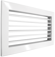 Решетка предназначена для использования в приточно вытяжных системах вентиляции и кондиционирования. Решетка применяется для монтажа в воздуховоды или строительные проемы помещений различных типов, изготовлена из высококачественного алюминиевого профиля и окрашена методом порошкового напыления в белый цвет (RAL 9016). Решетка снабжена индивидуально регулируемыми жалюзи, что позволяет изменять направление воздушной струи. Также может комплектоваться клапаном расхода воздуха D.