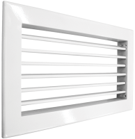 Решетка предназначена для использования в приточно вытяжных системах вентиляции и кондиционирования. Решетка применяется для монтажа в воздуховоды или строительные проемы помещений различных типов, изготовлена из высококачественного алюминиевого профиля и окрашена методом порошкового напыления в белый цвет (RAL 9016). Решетка снабжена индивидуально регулируемыми жалюзи, что позволяет изменять направление воздушной струи. Также может комплектоваться клапаном расхода воздуха D.