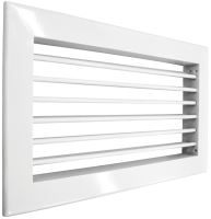 Решетка предназначена для использования в приточно вытяжных системах вентиляции и кондиционирования. Решетка применяется для монтажа в воздуховоды или строительные проемы помещений различных типов, изготовлена из высококачественного алюминиевого профиля и окрашена методом порошкового напыления в белый цвет (RAL 9016). Решетка снабжена индивидуально регулируемыми жалюзи, что позволяет изменять направление воздушной струи. Также может комплектоваться клапаном расхода воздуха D.